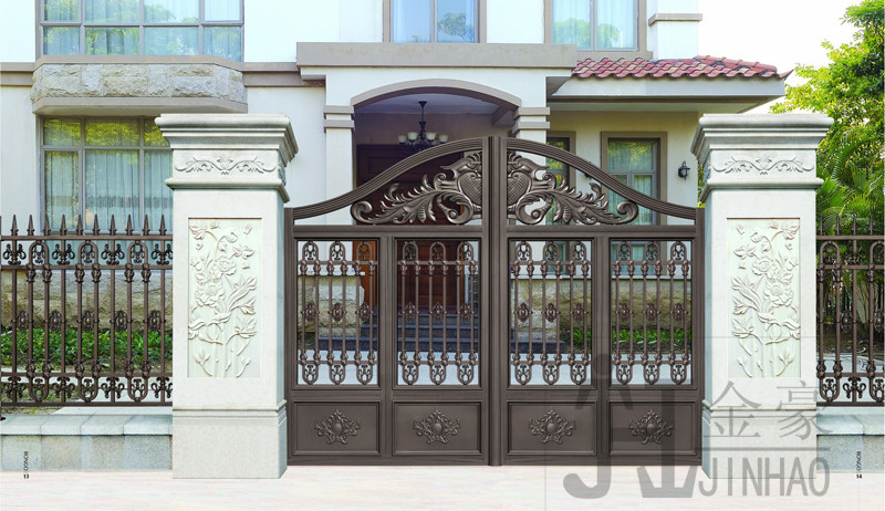 金豪高端鋁藝庭院大門,鋁藝別墅大門系列產(chǎn)品,外觀設(shè)計融合中西方文化的結(jié)晶,精雕細(xì)琢的完美工藝凝聚著關(guān)于品味與價值的追求。高雅別致、豪華壯觀、高端大氣、沉穩(wěn)厚重,結(jié)合電動、智能、感應(yīng)為一體,采用靜電粉末噴涂及氟碳涂料,耐氧化,耐腐蝕, 終身不生銹,是您豪宅精彩的點睛之筆。